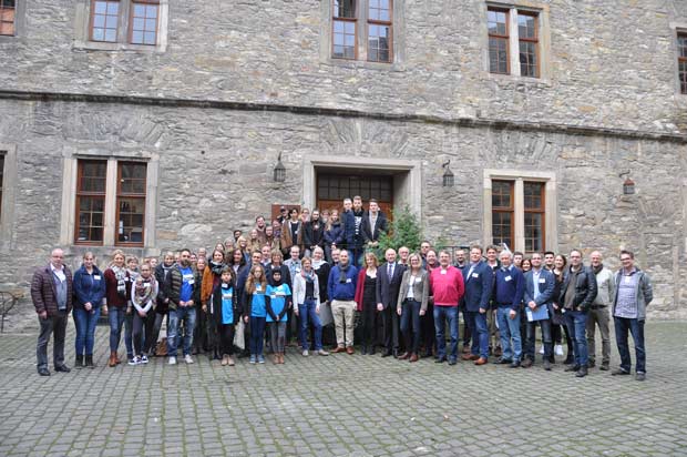 Foto 1: „Erinnern.Gestalten“: Die Teilnehmerinnen und Teilnehmer des ersten Bildungs-Partnertages des Kreismuseums Wewelsburg, vorn im Bild (mit Anzug und Krawatte) der stellvertretende Landrat des Kreises Paderborn, Hans-Bernd Janzen, und Museumsleiterin Kirsten John-Stucke. © Kreismuseum Wewelsburg