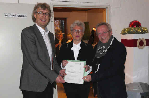 Minden. Grund zum Jubeln hatten am 8. Dezember rund 50 Bürgerinnen und Bürger aus Minden-Aminghausen: Für den Umbau des alten Spritzenhauses zu einem Dorfgemeinschaftshaus gibt es eine üppige Unterstützung vom Bund und vom Land Nordrhein-Westfalen. Einen Förderbescheid in Höhe von knapp 88.000 Euro übergab Günther Heidemann von der Bezirksregierung Detmold, verantwortlich für Maßnahmen der „Integrierten ländlichen Entwicklung“, an Bürgermeister Michael Jäcke – passend während des 10. Adventszaubers im Spritzenhaus.