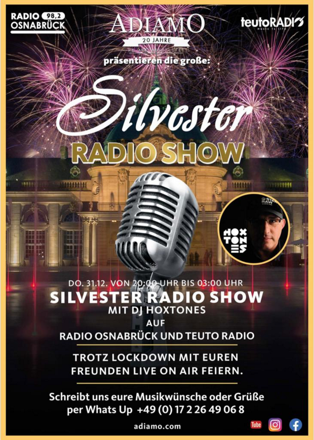 Donnerstag 31.12.2020 ab 20 Uhr bis 3 Uhr: Die große Adiamo Silvester Radio Show auf Radio Osnabrück und TeutoRadio Mit DJ Hoxtones
