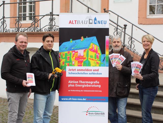 Informieren zur Aktion Thermographie plus Energieberatung: Carsten Heilmann und Oliver Erdmann (Energieberater), Bernd Schüre und Andrea Flötotto (Fachbereich Umweltschutz)