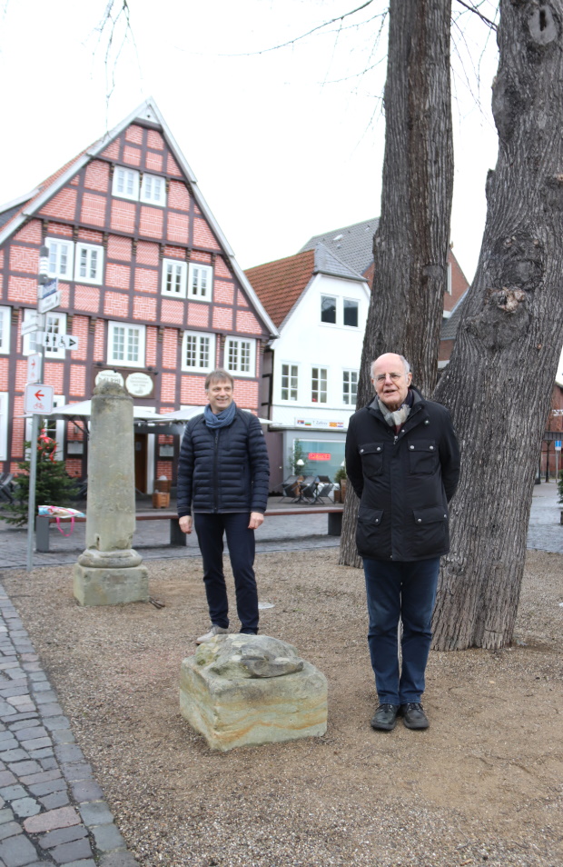 Rheda-Wiedenbrück. Ihren ursprünglichen Standort haben jetzt Säulenfragmente des alten Rhedaer Rathauses auf dem Doktorplatz wiedergefunden. Unter den großen Linden des Platzes zeigen die Säulenreste den Standort des alten Rathauses an, das etwa im Jahre 1603 auf dem damaligen Lindenplatz errichtet wurde. Klaus Landwehr von der Unteren Denkmalbehörde der Stadt und Dr. Wolfgang Lewe vom Heimatverein Rheda e.V. freuen sich, dass die Pfeiler nun wieder an der richtigen Stelle stehen. Vor der Umgestaltung des Platzes kündete eine Säule in der Nähe der Alten Münze vom ehemaligen Verwaltungsgebäude, das 1856 abgebrochen worden war. Nun rücken die Objekte aus grünem Sandstein wieder sichtbar in den Mittelpunkt. Während der Platzsanierung waren die Fragmente gesichert worden. Jetzt sind die Säule und eine Säulenbasis von Bildhauer Bernhard Vielstädte aus Herzebrock-Clarholz sorgsam gesäubert und aufbereitet dort neu aufgebaut worden, wo der Säulengang des altenRathauses tatsächlich verlief. Eine kleine Tafel wird den Standort in Kürze mit weiteren Informationen sowie historischen Plänen und Ansichten ergänzen.