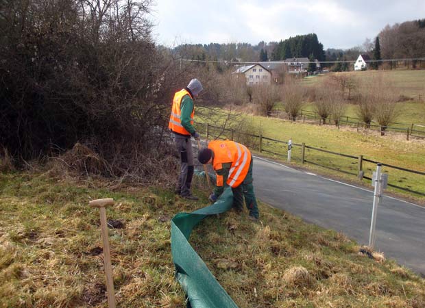Aktiv für den Artenschutz: Helfer im Freiwilligen Ökologischen Jahr beim Kreis Lippe bauen zwei Kilometer Krötenschutzzäune in Detmold-Heiligenkirchen. Foto: © Kreis Lippe
