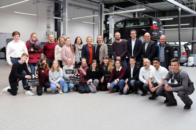 Kreis Gütersloh. Im Rahmen des Projekts ‚Berufe-Klappe‘ des Schülerlabors ‚Digitale Medien‘ der Gesamtschule Rheda-Wiedenbrück wurde das Autohaus Thiel in Rheda-Wiedenbrück zum Drehort für spannende Filmaufnahmen. 12 Schülerinnen und Schüler der Gesamtschule Rheda-Wiedenbrück bildeten ein Produktionsteam, um ausgewählte MINT-Ausbildungsberufe im Autohaus Thiel filmisch zu begleiten und darzustellen.