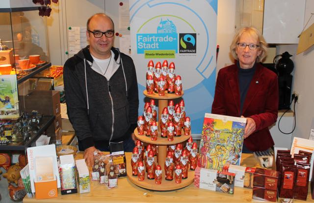 Rheda-Wiedenbrück ist seit 2010 Fairtrade-Stadt. Seitdem gab es zahlreiche Aktionen, um für den Fairen Handel zu werben. Der Erfolg ist unter anderem an den Verkaufszahlen für fair gehandelte Nikoläuse zu sehen. Das Einstein-Gymnasium kauft jedes Jahr ca. 400 Stück. Weitere 450 Stück werden jährlich von den Schulen Eichendorff, Postdamm und Pius bzw. den Messdienern St. Aegidius und St. Pius geordert. Die Ev. Kita Krumholzstraße kauft jedes Jahr ca. 80 Stück.