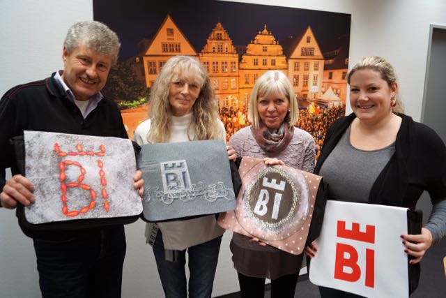 Bielefeld. Das neue Logo der Stadt Bielefeld setzt kreative Energien frei. Das zeigt sich im Fotowettbewerb, den Bielefeld Marketing ausgerufen hat. Täglich werden auf http://mein.bielefeld.de fantasievolle Adaptionen des BIE-Signets hochgeladen. Zu sehen gibt es Logos aus Steinen, Muscheln, oder Kartons, es wird gestrickt, gebacken, gezeichnet und gebastelt. Jede Woche lost Bielefeld Marketing zwei Gewinner aus. Die ersten Teilnehmer haben jetzt ihre Preise persönlich in Empfang genommen. Sie erhielten exklusive Umhängetaschen, die von der Halfar System GmbH aus Bielefeld mit Logo-Ideen der Gewinner gestaltet wurden.