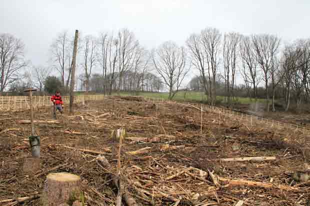 Abgetrennt wird das Gebiet durch einen Zaun aus unbehandeltem, heimischem Fichtenholz. Das hat den Vorteil, dass das Material abbaubar ist und in der Natur verbleiben kann. Gepflegt wird der Bienenwald durch den Landesverband. Bis man einen jungen, summenden Mischwald vorfindet, werden noch ein paar Jahre vergehen, die ersten grünen Blätter dürften sich allerdings bereits im Juni zeigen.