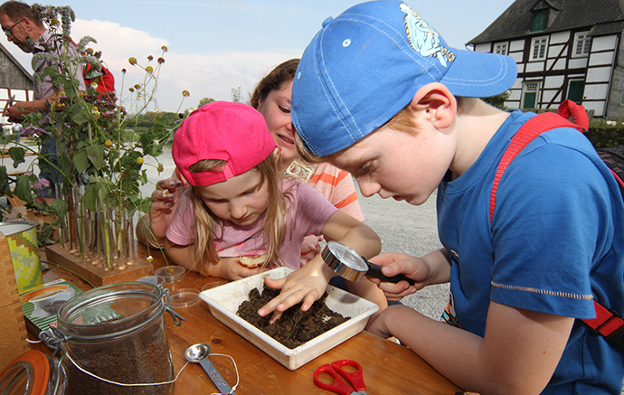 Kinder können bei zahlreichen Mitmachprogrammen beispielsweise kleine Bodentiere entdecken oder Saatgutkugeln herstellen. Foto: LWL/Jähne