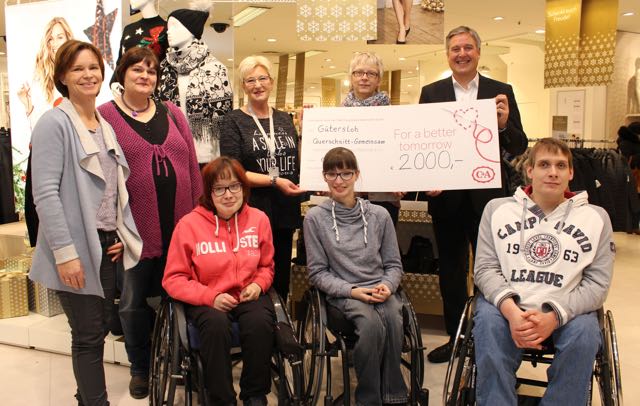 BU: Mit einer Spende schenkte die C&A-Filiale jetzt Freude für den Verein „Querschnitt-Gemeinsam selbständig wohnen in Gütersloh e.V.“