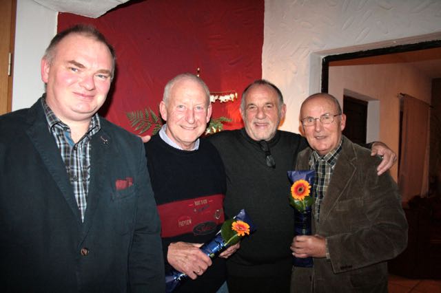 Gratulation an die langjährigen CDU-Parteimitglieder: (v. links) Jens Sommer (neu gewählter stellvertretender Vorsitzender), Manfred Wieneke (45 Jahre Mitglied), Klaus Nolting (Vorsitzender) und Günter Dindas (45 Jahre Mitglied).