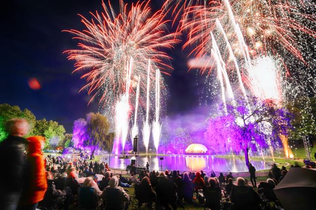 Auch auf zwei Unterbrechungen wegen Regens reagierten die Menschen geduldig und wurden so mit einem spektakulären Finale entschädigt. Ein Feuerwerk begleitete die Schlusslieder der grandios aufspielenden Musiker – die Bielefelder Philharmoniker, das Thilo Wolf Jazz Quartett und die Sängerin Johanna Iser. Für die beeindruckende Feuerwerk-Show sorgten die Bielefelder Spezialisten von Flash Art.