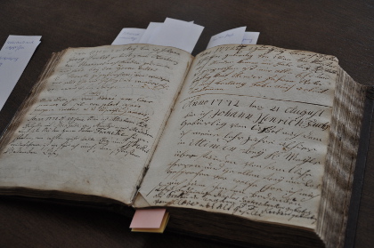 Bisher hat Dr. Monika Schulte rund 100 Stunden Arbeit in die Sichtung und Übersetzung (Transkription) investiert – die Einträge sind in Latein, Französisch oder Altdeutsch verfasst. Den weiteren Weg wird sie mit begleiten, denn das Buch geht in die Mindener Restaurationswerkstatt „el papel“. So kann jeder Arbeitsschritt besprochen und in kritischen Situationen eine gemeinsame Entscheidung getroffen werden. Dort wird die Funktionalität des Einschreibbuches wieder hergestellt. Dafür gibt es unterschiedliche Vorgehensweisen. Beispielsweise wird der Ledereinband abgenommen, die Seiten voneinander gelöst und der Tintenfraß behoben. Dabei ist es wichtig, eine gute Balance zwischen dem Erhalt der historischen Substanz und neu eingesetzten Stücken zu schaffen. „Es kann sein, dass wir beim Abnehmen des Einbands auch unerwartete Papierstücke finden. Früher wurden die Buchdeckel aus aufeinander geklebten Papierresten hergestellt. Ein Zufallsfund ist dabei nicht ausgeschlossen“, beschreibt Monika Schulte.