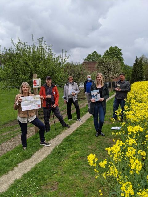 Bild (v.li.): Susanne Weishaupt (Regionalmanagement LEADER-Region 3L-in-Lippe), Jacqueline Heger (Lippe Tourismus & Marketing GmbH, Tourist-Information Lage), Bernd-Rainer Knepper (Deutsche Herzstiftung e.V.), Günter Weigel (Geschäftsführer Lippe Tourismus & Marketing GmbH), Gebhard Rösler (Heimat- und Verkehrsverein Hörste e.V.) und Erwin Wolthaus (Deutsche Herzstiftung e.V.) auf dem Therapeutischen Wanderweg in Lage-Hörste. Foto: Tourist-Information Lage