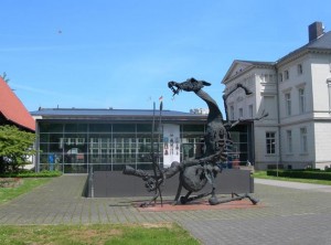 Vor dem Museum ist die Skulptur Frieden: Der Sturz der apokalyptischen Reiter von Wilfried Koch (1998) aufgestellt.
