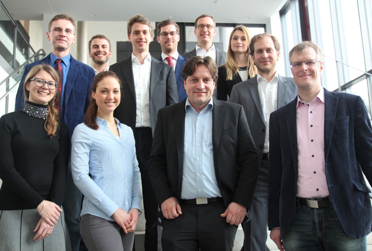 Foto (Universität Paderborn, Vanessa Dreibrodt): Die Projektgruppe um Prof. Dr. Daniel Beverungen (1. v. r.) traf sich zum Auftakt an der Universität Paderborn.