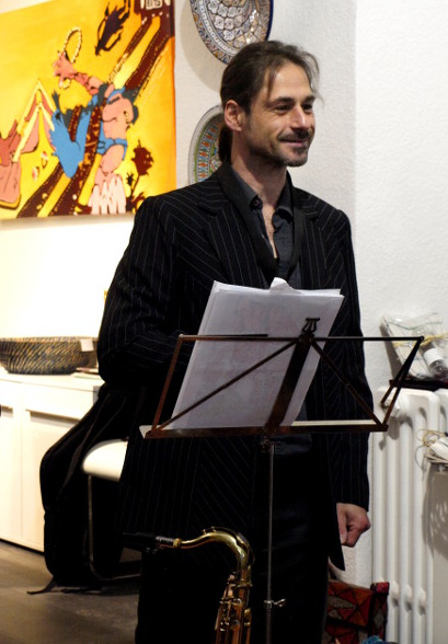 Bielefeld. In der Galerie Kunst und Leben, an der Breiten Straße 23 in Bielefeld,  eröffnete der Künstler Peter Schnathorst seine Ausstellung mit liebevoll angerichtetem Fingerfood und ausgewählten Filmsongs zu seinen Gemälden, welche er persönlich auf seinem Saxophon präsentierte. „Zuerst sind die Bilder entstanden, worauf ich zu jedem einzelnen präzise den Song aussuchte “ so Schnathorst. Die Musik verstärkt den Effekt der Bilder, doch auch ohne regen die kopflosen cartoonartigen Figuren die Fantasie an. Die Werke sollen unterhalten und auf diese Weise die Botschaft des Künstlers unterstützen: Das Leben ist leichter zu meistern mit einem Lächeln auf dem Gesicht.