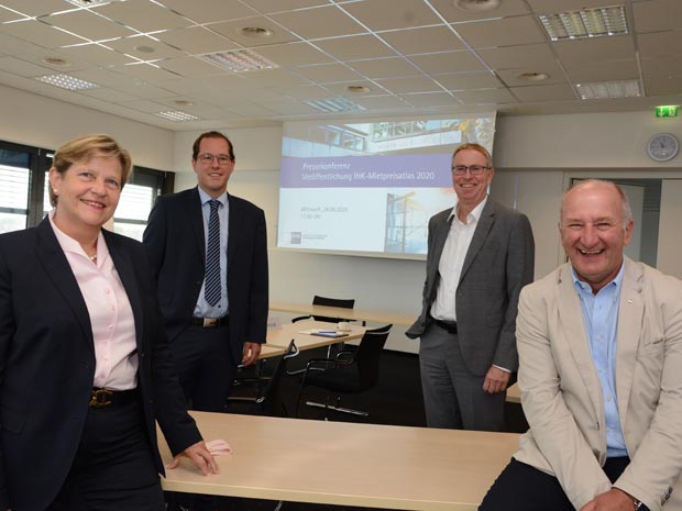 Analysieren die Mietpreissituation in Ostwestfalen: IHK-Vollversammlungsmitglied Heike Winter, IHK-Referent Dr. Gerald Staacke, stv. IHK-Hauptgeschäftsführer Harald Grefe und IHK-Vollversammlungsmitglied Michael Fredebeul (v.l.), Foto: © IHK