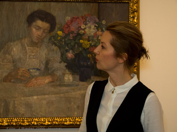Bei der Eröffnungsveranstaltung stellt die Kuratorin Anna Maria Katz das Ausstellungskonzept vor. Foto: Jürgen Riedel.
