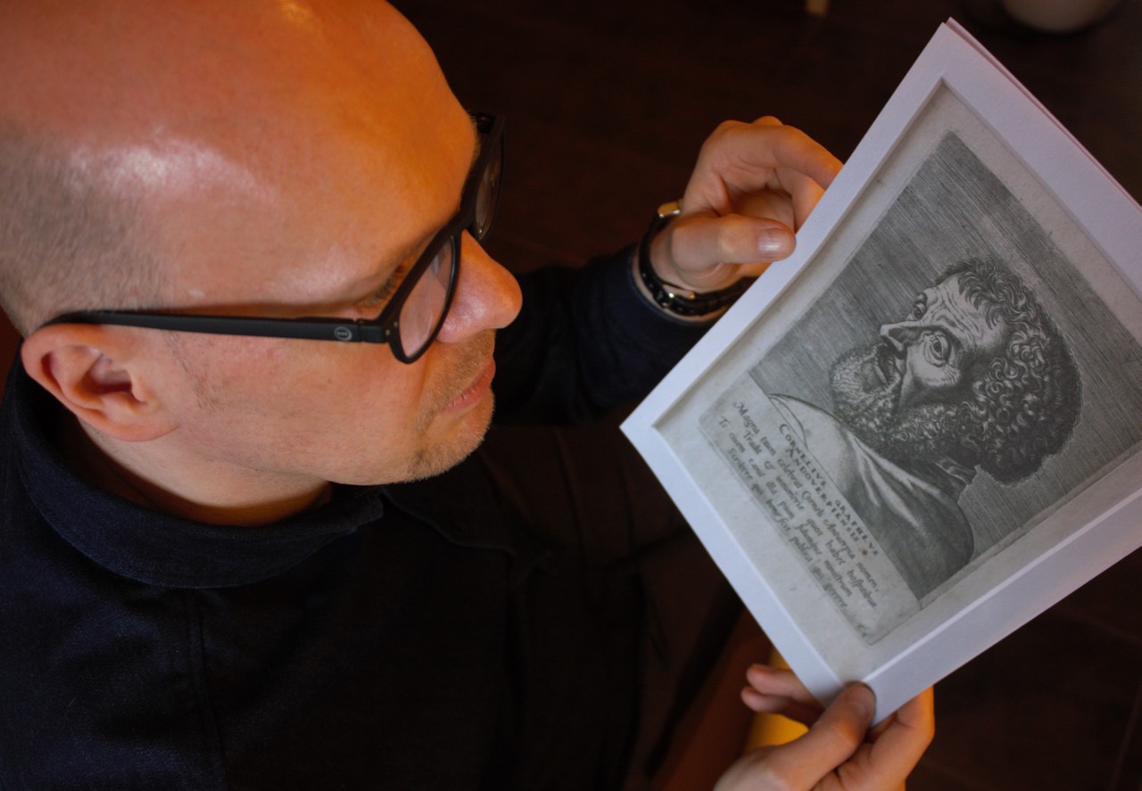 Foto: Dr. Ralf Ruhnau hat 95 Euro für den Erwerb einer Grafik gespendet, die ab 3. September in der Sonderausstellung „Mach’s Maul auf“ im Weserrenaissance-Museum zu sehen sein wird. Das Bild zeigt Cornelis Scribonius Graphaeus, der gezwungen wurde, seine Luther-Gesinnung zu widerrufen. Foto: Weserrenaissance-Museum Schloss Brake