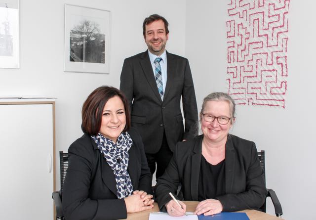 Vertragsunterzeichnung für den Hochleistungscomputer: (v. l.) Nurcan Rasig (Firma Cray), Prof. Dr. Christian Plessl und Simone Probst.Foto:Universität Paderborn, Johannes Pauly