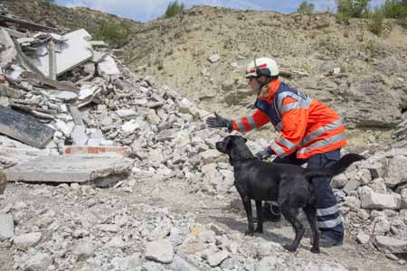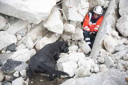 Bild 2: Anspruchsvolle Trainingsflächen – ob auf Trümmern oder im Wald wurden die Hunde vor Herausforderungen gestellt © A. Jaeckle
