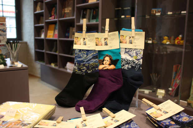Genauso witzig wie die Ausstellung sind auch die Shopartikel im Weserrenaissance-Museum. Der absolute Renner sind dabei die bunten Socken mit verschiedenen Kunstdrucken. Da kann man sich die nackte Venus von Botticelli einfach mal über die Füße streifen. Zur Auswahl stehen auch die süßen Engel von Raffael oder der verzweifelte Schrei von Munch.