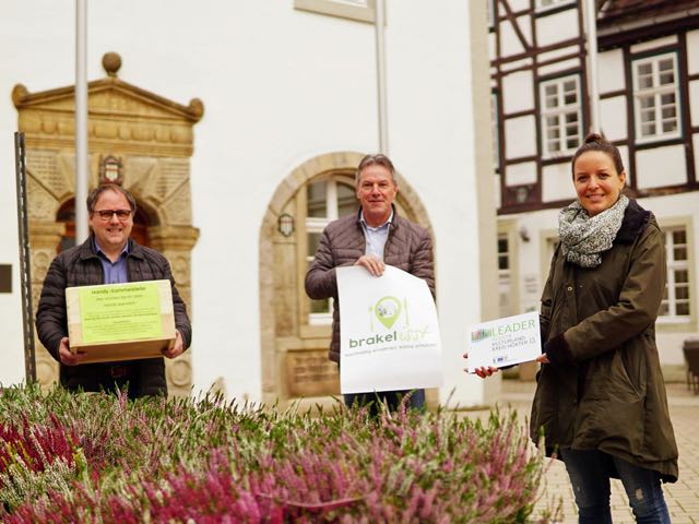 Feierabendmarkt am 20. Okotber 2020 von 16-20 Uhr in Brakel (v. links): Rainer Schäfers, Peter Frischemeier und Vera PrenzelFoto:Stadt Brakel