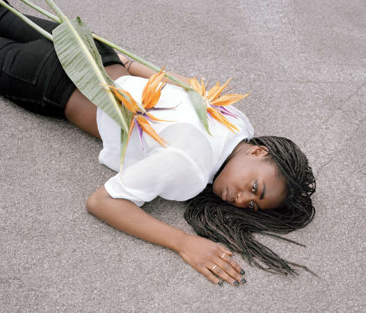 Da ist zum Beispiel das Bild einer dunkelhäutigen Frau, die bäuchlings auf dem Boden liegt, vermutlich Asphalt, also auf der Straße, und auf Ihrem Rücken liegen zwei Strelitzien, sogenannte Paradiesvogelblumen. Weisen die afrikanischen Blumen vielleicht auf die Herkunft der Frau hin? Erzählt die Szene vielleicht von ausgeübter Gewalt, wenn auch angesichts der Blumen sehr zynisch? Ein anderes Bild zeigt einen ebenfalls dunkelhäutigen Mann mit entblößtem, muskulösem Oberkörper, der im Freien vor einer Hauswand steht. Hinter ihm wird, offensichtlich von einer weißen Frauenhand mit auffällig lackierten Fingernägeln, eine Tafel mit einem Muster hochgehalten, das an ein Leopardenfell erinnert. Schnell könnte man das als Haltung eine klassischen Machos deuten. Wieder andere Bilder verbinden die porträtierten Menschen mit überraschenden, vermutlich symbolischen Requisiten. Die Porträts werden zudem kombiniert mit verschiedenen Stilleben, dominiert von exotisch wirkenden Mustern und Ornamenten, die auch ohne präzise Sachkenntnis leicht arabischer, afrikanischer oder asiatischer Herkunft zuzuordnen sind.