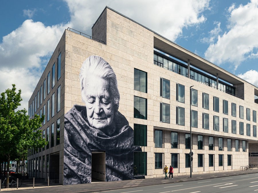BU: Die Fotografie von Sabine Gramlich war im vergangen Jahr Teil der Paste-Ups desKünstlerduos Mannstein und Vill, die verteilt im Gütersloher Stadtgebiet zu sehenwaren. Foto: Detlef Güthenke. Paste-Up von Mannstein + Vill.
