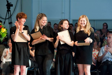 Foto: Die glücklichen Gewinnerinnen des Modepreis 2015 (v.l.): Rani Maria Lange, Julia Maria Krisp, Rabia Celik und Katharina Maria Münch.