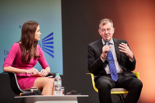 Der Botschafter von Estland, Dr. Mart Laanemäe, berichtete vom Fortschritt der Digitalisierung in Estland, links: Moderatorin Kristina Sterz