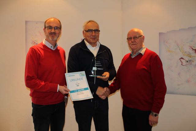 10 Jahre erfolgreiche Zusammenarbeit feiern (v.l.n.r.) Geschäftsführer Marc Vathauer, Vertriebspartner John Triki und Geschäftsführer Karl-Ernst Vathauer.