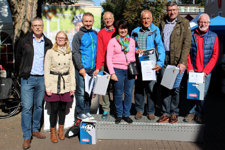 Gütersloh (gpr). 435 Radler, 36 Teams, 99274 Kilometer, 14310 Kilogramm eingespartes CO2 – das ist die beeindruckende Statistik von Güterslohs erster Teilnahme an der bundesweiten Aktion Stadtradeln. Im Rahmen der Fahrradaktionstage bedankte sich Bürgermeisterin Maria Unger am Samstag bei allen Teilnehmern und übergab den zehn aktivsten Radfahrern den Fahrradhelm der Stadt Gütersloh.