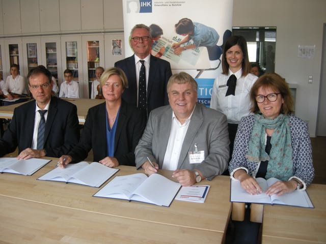 Harsewinkel. Mit Unterstützung der Industrie- und Handelskammer Ostwestfalen zu Bielefeld (IHK) unterzeichneten die Gesamtschule und die CLAAS Selbstfahrende Erntemaschinen GmbH, beide in Harsewinkel, eine Vereinbarung zur „Kooperation IHK – Schule – Wirtschaft“. Es ist die 213. von der IHK vermittelte oder direkt unterstützte Kooperation im IHK-Bezirk.