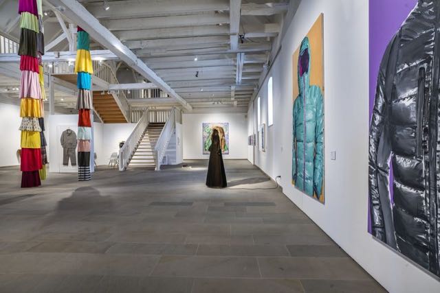 Blick in die Ausstellung „anziehend. Kunst-Kleider und textile Objekte“ in der Städtischen Galerie in der Reithalle.Foto: © Kalle Noltenhans
