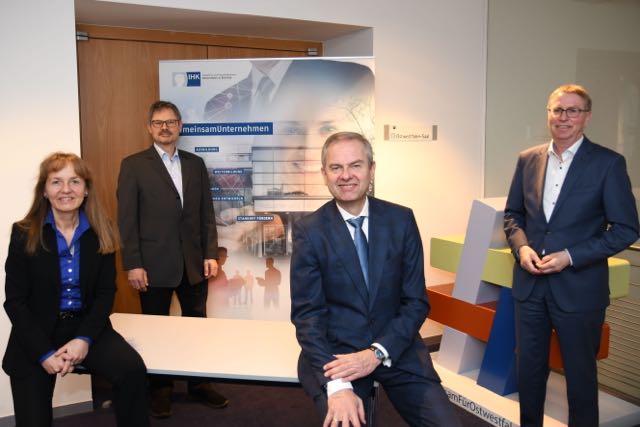 Präsentierten die Ergebnisse der IHK-Frühjahrs-Konjunkturumfrage für die ostwestfälische Industrie: IHK-Hauptgeschäftsführerin Petra Pigerl-Radtke, IHK-Geschäftsführer Dr. Christoph von der Heiden, IHK-Präsident Wolf D. Meier-Scheuven und der stellvertretende IHK-Hauptgeschäftsführer Harald Grefe (v.l.). Foto: IHK