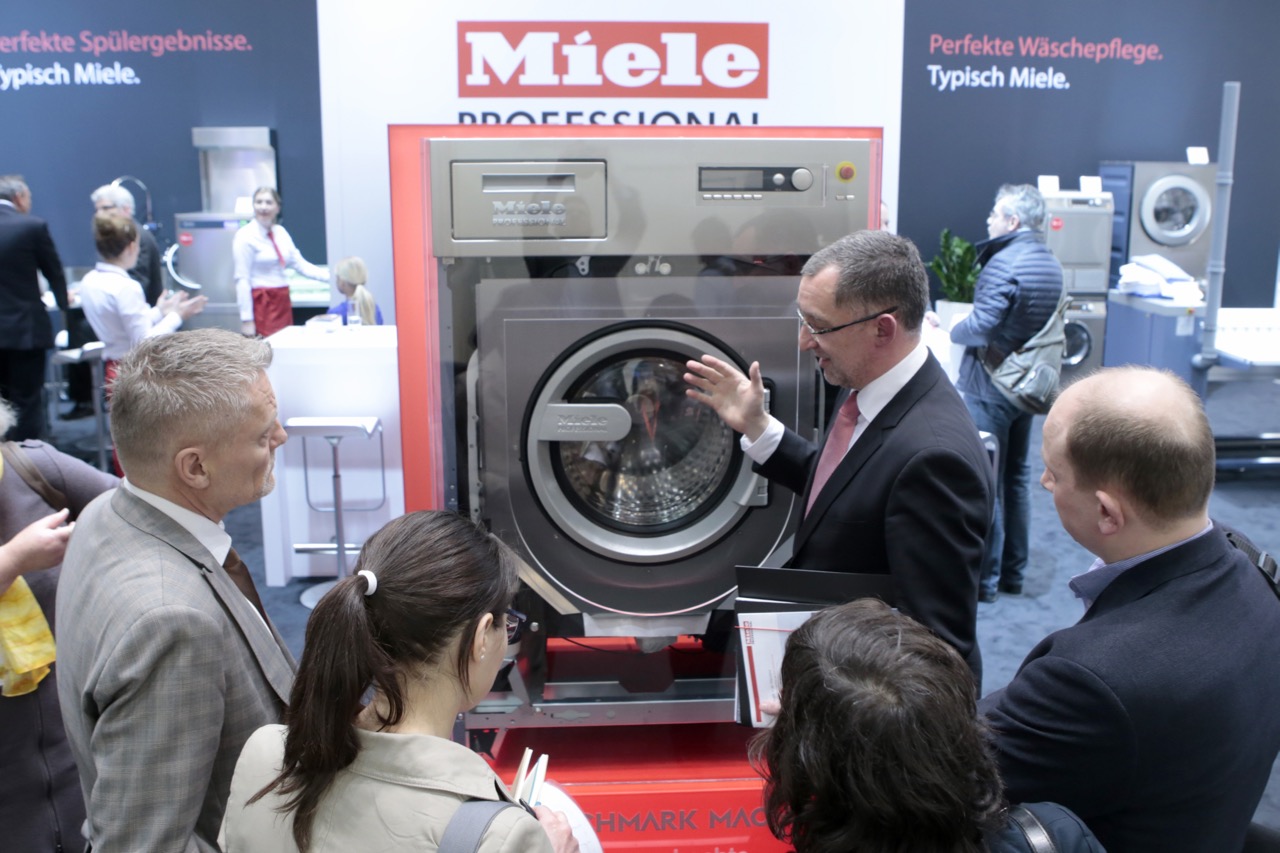 Für Wäscherei und Spülküche präsentiert Miele Professional in Hamburg ein umfassendes Angebot: Trockner mit alternativen Beheizungsarten wie Wärmepumpe oder Heißwasser, Mangeln sowie Gewerbegeschirrspüler mit Tank- oder Frischwassersystem. Und weil sich die Geräte konsequent am Nutzen für den Anwender orientieren, lassen sie sich anpassen: Mit Spezialprogrammen, automatischer Flüssigdosierung und vielen weiteren Optionen – die auf dem Messestand vorgeführt und oft auch ausprobiert werden können. Schäfer: „Ich bin sehr zuversichtlich, dass wir mit diesem Angebot unsere weltweite Marktposition als Systemanbieter für Hotellerie und Gastronomie festigen und weiter ausbauen werden.“