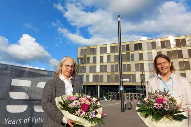Prof. Dr. Michaela Brause (links) und Prof. Änne-Dörte Latteck (rechts) freuen sich auf ihre neuen Aufgaben. (Foto: FH Bielefeld)