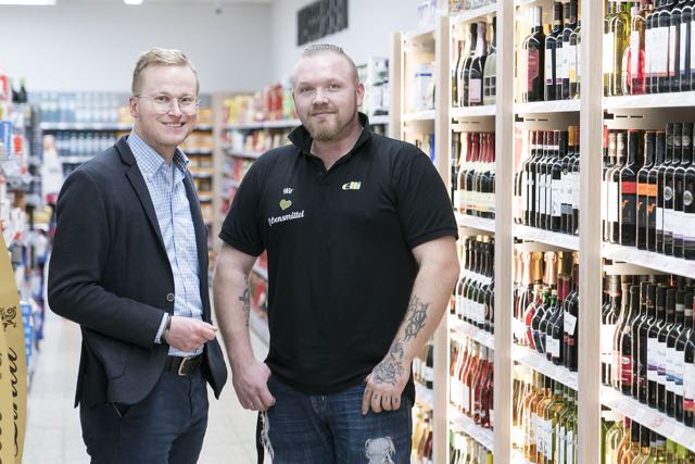 Das Ergebnis kann sich mehr als sehen lassen. Eugen Hertel (r.) in seinem neuen „Elli-Markt“ im Zentrum von Wewelsburg mit Michael Kubat, Wirtschaftsförderung Stadt Büren