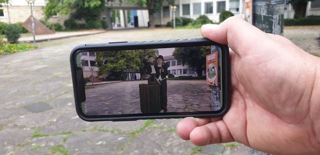 Mit der kostenlosen „Kultour-Caching-App“ können an neun Stationen hintergrundfreigestellte Künstlervideos abgerufen werden. Foto: © Kulturamt der Stadt Paderborn