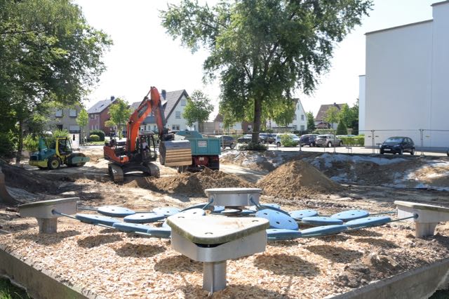Grund der großen Auskofferungsaktion war eine ehemalige Hausmülldeponie auf dem Areal der Schule, die im Rahmen der geplanten Erweiterung der Parkschule entdeckt worden ist. In Abstimmung mit dem Kreis Gütersloh unter Aufsicht eines Fachbüros wurde die Deponie vollständig ausgebaut und nunmehr wieder neu verfüllt. Seit Februar 2020 waren die Spielflächen aus Vorsorgegründen gesperrt, die Spielgeräte ausgebaut und der Aufwuchs gerodet. Christoph Kraeft vom Tiefbaumamt der Stadt Rheda-Wiedenbrück hat das Projekt begleitet und lobte insbesondere die beiden Mitarbeiter der Firma Kathöfer für ihren tollen Einsatz, damit das Gelände passend Mitte der kommenden Woche fertig wird.