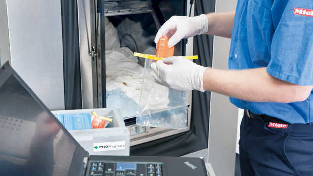 Gütersloh. Ob das Zusammenspiel zwischen desinfizierenden Waschverfahren und -mitteln einwandfrei funktioniert, überprüft der Kundendienst von Miele Professional seit knapp zwei Jahren auf zuverlässige Weise. Das Prüfverfahren „ProHygiene“ hat sich in Krankenhäusern und Senioreneinrichtungen durchgesetzt – und wird jetzt ergänzt durch „ProHygiene plus“.