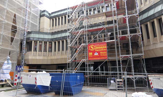 Teilweise eingerüsteter Neubau (Pressestelle der Stadt Minden)
