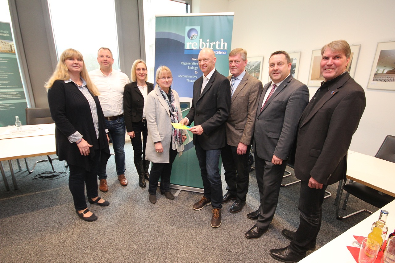Geben den Startschuss für REBIRTH active school (von links): Iris Hansmann (Weerth-Schule), Schulaufsichtsbeamte Anke Freytag, Christoph Trappe (Geschwister Scholl-Gesamtschule), Elke Prasse (Bachschule), Prof. Dr. Uwe Tegtbur, Prof. Dr. Axel Haverich, Landrat Dr. Axel Lehmann und Dr. Klaus Schafmeister (Zukunftsbüro Kreis Lippe).