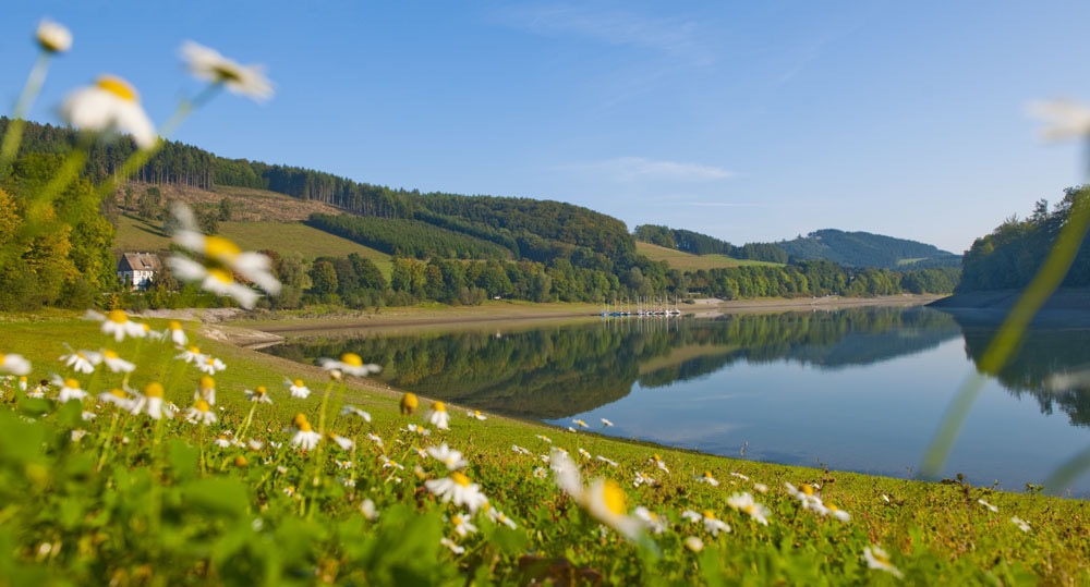 Der Hennesee bei Meschede lädt zum spazieren gehen, radfahren und Inline-Skaten ein.Copyright: © Foto Oliver Franke/Tourismus NRW e.V.