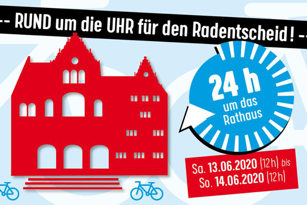 Zuvor wolle der Radentscheid noch einmal Aufmerksamkeit erzeugen und um Zustimmung werben, daher sei unter dem Motto „Rund um die Uhr für den Radentscheid!“ für Samstag, 13. Juni, 12.00 Uhr, bis Sonntag, 14. Juni, 12.00 Uhr eine 24-stündige Fahrt rund ums Rathaus geplant.