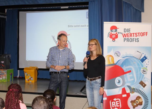 Die Medien-Pädagogen Achim Büchner und Jürgen Schardt, die in Lippe bereits seit einigen Jahren ebenfalls das Lerntheater zum Thema Energie für die Dritt- und Viertklässler präsentieren, besuchten in diesem Jahr die Grundschule Hiddesen, die sich 2017 in besonderem Maße für den Klimaschutz engagiert hatte. In der knapp anderthalbstündigen Veranstaltung demonstrierte „Achim“, wie er von den Kindern freundschaftlich genannt wird, den Dritt- und Viertklässlern, warum es wichtig ist, den Müll zu trennen, wie sich Roh- und Wertstoffe definieren und was als Sondermüll entsorgt werden muss.