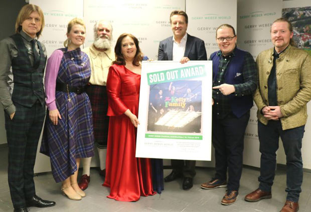 Bevor aber „The Kelly Family“ gemeinsam mit „Special Guest“ und Gründungsmitglied Paul Kelly auf der Haller Konzertbühne in der ausverkauften Eventarena vor 7.000 Fans standen, zeichnete Ralf Weber die Kultband mit einem „Sold Out-Award“ aus: „Wir sind stolz darauf, Euch wieder bei uns zu begrüßen.“ Sichtlich erfreut über diese Auszeichnung antwortete das Sextett: „Wir sind überwältigt, das ist eine tolle Ehre für uns. Wir freuen uns riesig auf das Konzert in dieser großartigen Arena. Und damals, an unseren ersten Auftritt hier, haben wir noch beste Erinnerungen.“ Die einstigen Straßenmusiker begeisterten am 22. August 1998 mehr als 9.000 Besucher im GERRY WEBER STADION, woran sich Ralf Weber noch gut erinnert: „Einige Fans reisten bereits eine Woche vor dem Konzert an und zelteten vor dem Stadion, um möglichst gute Plätze zu bekommen.“ Zudem hatte die irische Band zwei weitere Auftritte in der ostwestfälischen Lindenstadt. Am 09. Dezember 2007 gaben sie ein Adventskonzert vor über 920 Zuschauern im GERRY WEBER EVENT CENTER. Vier Jahre später (17. Dezember 2011) spielten an gleicher Stätte Paddy, Joey, Paul und Patricia Kelly im Rahmen der „Stille Nacht“-Tournee vor 1.500 Besuchern.