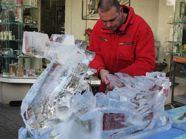Joachim Knorra bietet mit 50 verschiedenen Eisfiguren ein breitgefächertes Repertoire seiner Eiskunst. Und Kettensägen-Wettbewerbe, auch Speedcarving genannt, sind für den Eisbildhauer nichts Neues. Gegen den Holzschnitzer Werner Korzen ist Joachim Knorra bereits mehrfach angetreten. Mal abwarten, wer in Nieheim mit der geschnitzten Figur vorne liegt.