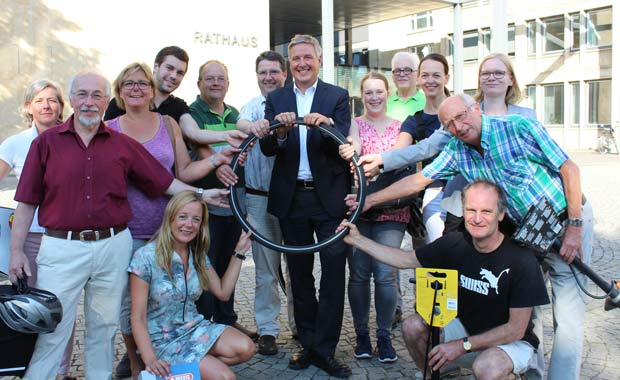 Gütersloh. Starke Teams, viel Freude am Radfahren und eine hohe Motivation, bei der Aktion Stadtradeln am Ball zu bleiben: Auch bei der dritten Gütersloher Teilnahme an der Aktion Stadtradeln waren viele dabei. „Toll, dass Sie mitgemacht haben“, sagte Bürgermeister Henning Schulz am Montag bei der Preisverleihung im Rathaus. Das große Engagement wurde mit Preisen rund ums Rad bedacht. Ob bunte Klingel, kleine Pumpe, Sattel, Reifen, Helm oder Schloss: Die Teilnehmer konnten sich über nützliche Preise freuen, die von den Fahrradhändlern „Fahrrad Peitz“, „Radsport Schiffner“, „Bikearena Fulland“,