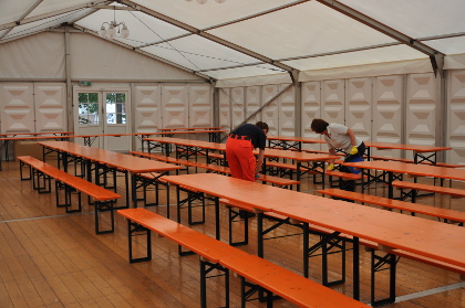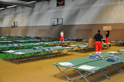 Der Stadt Minden blieben nach dem Amtshilfeersuchen der Bezirksregierung Detmold, das den Ersten Beigeordneten am späten Mittwochnachmittag erreichte, nur wenige Tage, um die Sporthalle Minden-Süd für die Unterbringung von 150 Flüchtlingen auszustatten, ein Verpflegungszelt nebst Bänken und Tischen zu organisieren sowie Räumlichkeiten in der ehemaligen Realschule für den Sanitätsdienst, den Sicherheitsdienst und für die Lagerung von Materialien herzurichten. Die „To-Do-Liste“ war aber insgesamt noch viel länger. So mussten auch Feldbetten organisiert – das hat die Feuerwehr Minden übernommen -, ein Caterer für die Verpflegung gefunden, Ansprechpartner vor Ort rekrutiert und eine Hilfsorganisation für die Betreuung engagiert werden.